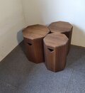 3個ばらばらにして大はサイドテーブル、中はベッドサイドの時計や眼鏡置き、小は玄関で靴を履くときの腰掛と色々な場面で活躍します。