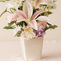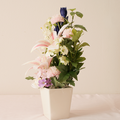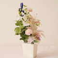花器付き仏花 ピンクユリ・菊・胡蝶蘭・りんどう(造花)