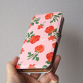 華やかな薔薇の柄の手帳型スマホケースです