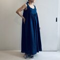 素材は透け感のあるフレンチリネンを使用しています。お色はデニムのようなブルーで、ネイビーより明るめです。