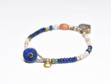 oldインドシルバーとシャン族カーネリアン、古代瑪瑙、oldチンシルバー&オリッサブラス、ブルー&ホワイトビーズを繋いだブレスです。
