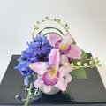 ◇カトレアのピンクとデルフィニウムのブルーのコントラストが、とても上品でモダンなアレンジメントです