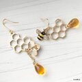 滴り落ちるたっぷりのハチミツはチェコビーズのドロップで表現しました。