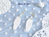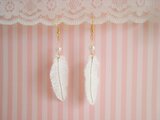 ホワイトデニムで作った羽根のモチーフのピアスです。