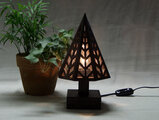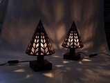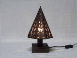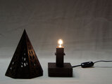 全体を木で制作して細かくカットしたガラスを入れた8角形のランプシェードです。