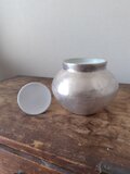 マット釉の上から銀彩を施した器です。銀の色と質感がとても綺麗です。