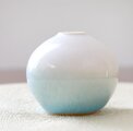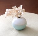 優しい丸みを帯びた可愛らしさと、陶器らしいどこか素朴で落ち着いた雰囲気を持ちつつ、すっきりとした佇まいをお楽しみいただける花器を目指して制作しました。