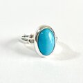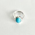 このリングのデザインは、ターコイズの魅力を引き立てるシンプルでありながらも少し個性を待ったスタイルに仕上げました。