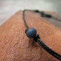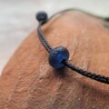 二本の紐をまとめるのは、青のインドパシフィックビーズ。