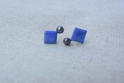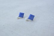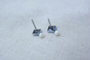 【カケラシリーズ】ピアス ひし形×青と淡水パール