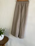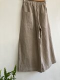 リネンのナチュラルな風合いが魅力の、大人のためのワイドパンツです。