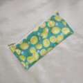 口部分はバイヤステープ風に同柄のラミネート生地で包み、段差をつけ中から飛び出さないよう工夫してあります。