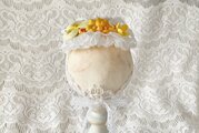 ドール用レースと染め花のスモールヘッドドレス(MLフリー・ビオラ・イエロー)