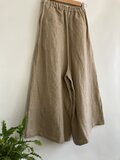 リネンのナチュラルな風合いが魅力の、大人のためのワイドパンツです。
