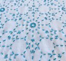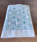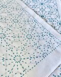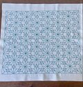 藍色と水色の糸とが織りなす模様がとても繊細で素敵な作品は逸品です。