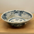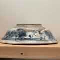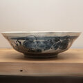染付技法でゴスという絵の具で、800度で焼いた素焼の状態で絵を描き、