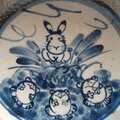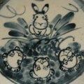 染付技法でゴスという絵の具で、800度で焼いた素焼の状態で絵を描き、
