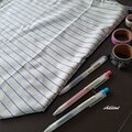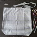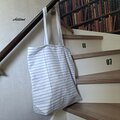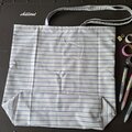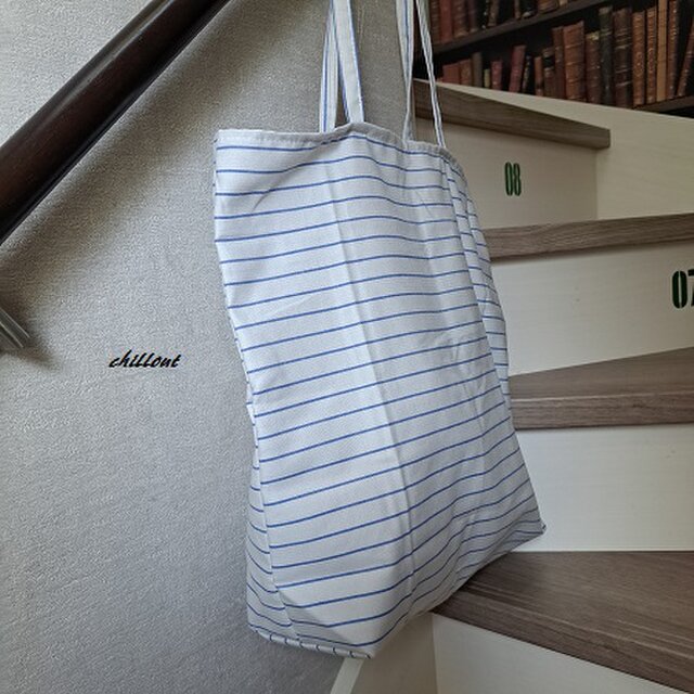 ブルー×ホワイトの大きなバッグは軽い素材で作りました。