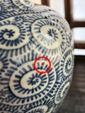 画像の赤丸内は焼成の時の釉薬の飛び抜けですのでお使いいただくには