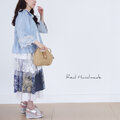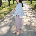 [Coordinate] ブルーフラワーとレースのあしらい・リネンふんわりパンツ(セットアップ可)
