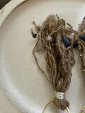 手紡ぎ糸、アンティークガラスビーズ、メタルビーズ、カレンシルバー、スピネル、カイヤナイト、ウッドビーズ、ポリエステル銀糸