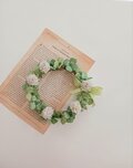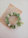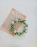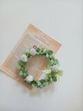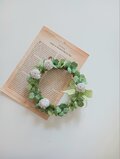 茎はワイヤーに布を巻き輪にし、しろつめくさ、三つ葉、四つ葉のクローバーを巻き仕上げました。