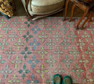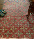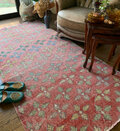 人気のリーフ柄は、経年変化とウォッシュ加工によりスモーキーなレッドがベースとなり、 シャビーな印象のレッドラグ