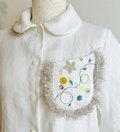 シンプルな丸衿の片方下にもフリンジを忍ばせてあります