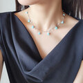 ラリマーと真珠のスライドチェーンビブネックレス・サージカルステンレス ~蒼海(そうかい)