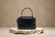 柔らかく手ざわりの良いヌメ革で仕立てた、小さめだけど上品なスクエアトート。