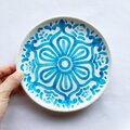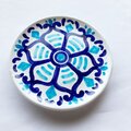 素焼きの陶器(土)に不透明の白い釉薬を掛け、その上から手描きで絵付けし約1000度で燃焼します。