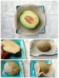 マルLサイズのエコラップを使ってメロン1/2個をエコラップで包みました。(5枚目の写真参照)