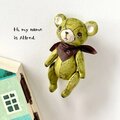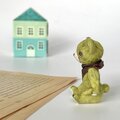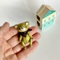 身長5cmのミニチュアテディベア/オリーブグリーン(和紙で作った小さなくまのお人形)&夢のドールハウスセット