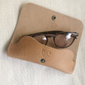 メガネをしっかりとホールド出来るよう、厚みのある革を使用したメガネケース。