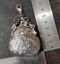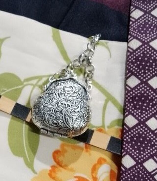 シルバーカラーがま口型根付ストラップ 着物や浴衣の帯飾りとして