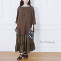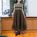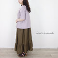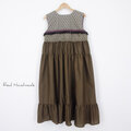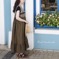 レイヤードレース×カーキコットンリネンのティアードワンピース
