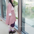 襟と袖口、見返しには、可憐なフラワーコットンを合わせて。