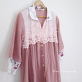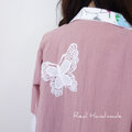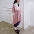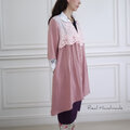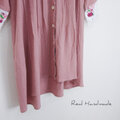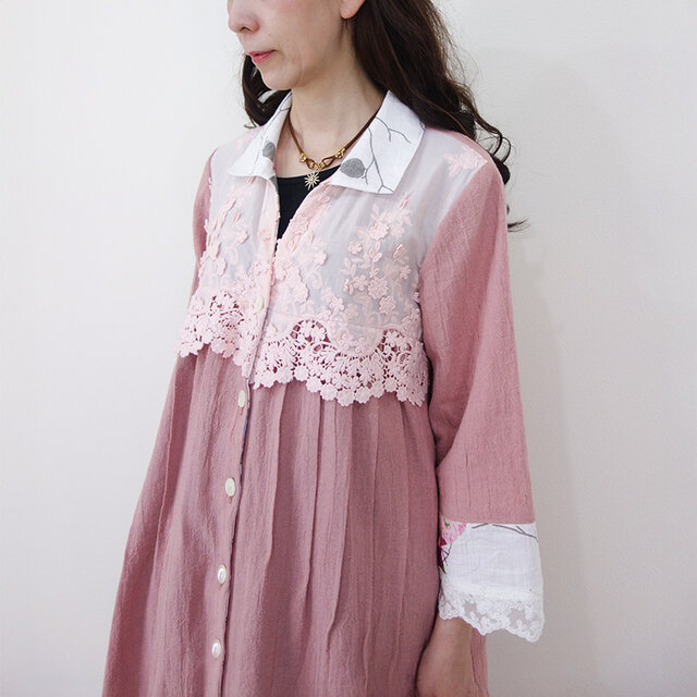 ラスト![予約販売] 花影レースとワッシャーハーフリネン・スモーキーピンクのイレギュラーヘム羽織りブラウス