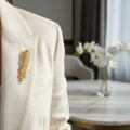 繊細なラインで羽根の質感をリアルに表現した、真鍮製のフェザーモチーフブローチ。ナチュラルでありながら存在感のあるデザインが、装いに軽やかなアクセントを添えてくれます。艶を抑えたアンティーク調ゴールドは、落ち着いた華やかさがあり、カジュアルからフォーマルまで幅広く活躍。ストールやジャケット、帽子などに合わせるのはもちろん、ギフトにもぴったりのアイテムです。専用ボックス付きでお届けします。