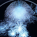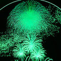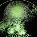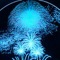 高精度レーザーで繊細に描いた花火と天の川の風景。