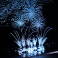 ほんのり水辺に映る花火の輝きが、幻想的な奥行きを添え、