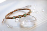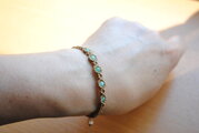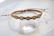 あかるいグリーンの色合いが素敵なエメラルドと金色ビーズを編み込んだブレスレットです。