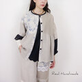 ブルーフラワーとレースのあしらい・リネン2WAY羽織りブラウス(セットアップ可)