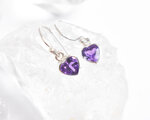 深みのあるパープルが美しいアメジストを、可愛らしいハート型にカットしてシルバーピアスに仕立てました。