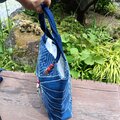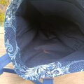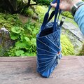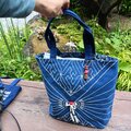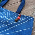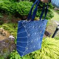 ・作品名:天然藍染・刺し子のトートバッグ(手提げバッグ)山珊瑚と山葡萄の蔓のチャーム付き