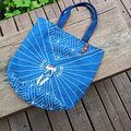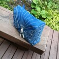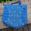 藍染と刺し子の出会いから生まれた、世界にひとつの手仕事トートバッグ(手提げバッグ)に大胆なデザインの刺し子とや山珊瑚を中央に配置して他にないオンリーワンな感じに仕上げました。