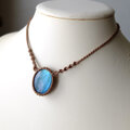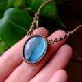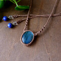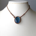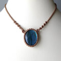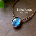 石全体にブルーグリーンに艶やかに輝くシラーが美しい良質なマダガスカル産ラブラドライトのマクラメ編みチョーカーネックレスです。