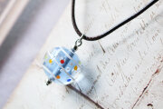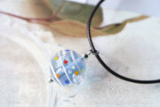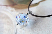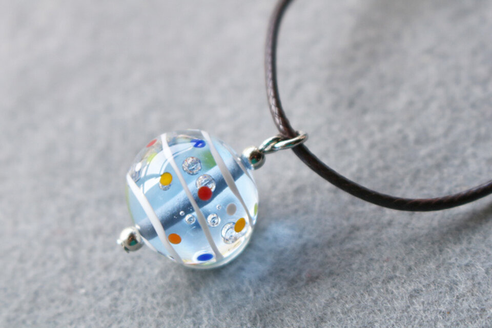 バーナーワークの技法で制作したヨーヨーモチーフのガラスペンダントです。