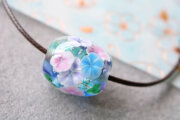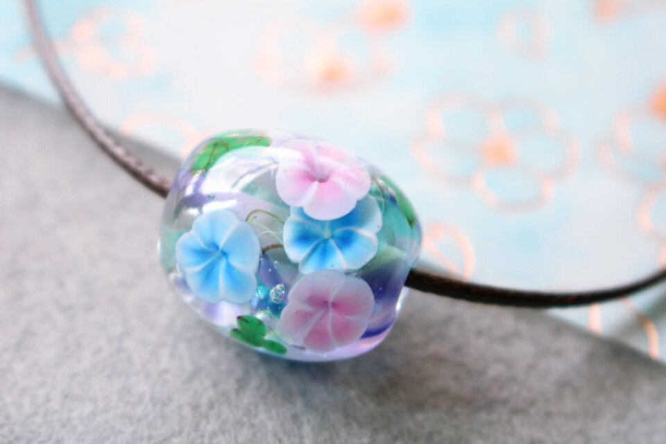 とんぼ玉のサイズは23mm×20mmです。重さは19gです。
