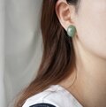 やわらかなグリーンの天然石アベンチュリンに、可憐なすずらんのモチーフを添えた、春らしい上品なピアスです。